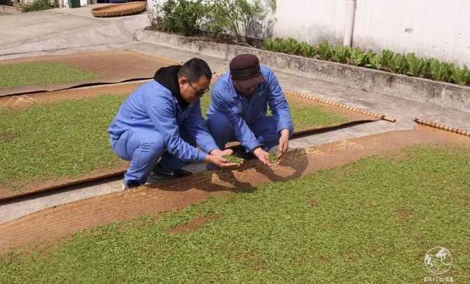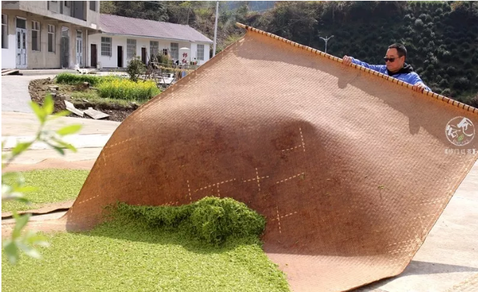 如此鲜嫩的茶,要赶着好天气第一时间送去加工制作。春日的阳光照着人正舒适,对于茶也是一样,懒懒的躺在阳光下竹席上,等着萎凋,被阳光晒软,晒干。每一年,刘厂长必须要亲自抖盘翻叶晒叶子,几代茶人都是如此,一年的第一批茶,带着对春天,对茶的感情,必须要精细制作。祁红初制工艺主要是四步:萎凋,揉捻,发酵,烘干。看着简单的四步,每一步都是时间和耐心的考验。